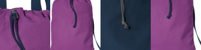 Available in several vibrant colors this soft cotton cinch pack has contrast webbing straps and a zippered pocket for additional storage.
