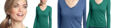 You’ve got a trendy look all buttoned up in this soft, textured style with dyed-to-match buttons on the neck.