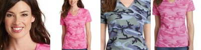 LPC54VC Ladies Core Cotton Camo V Neck Tee